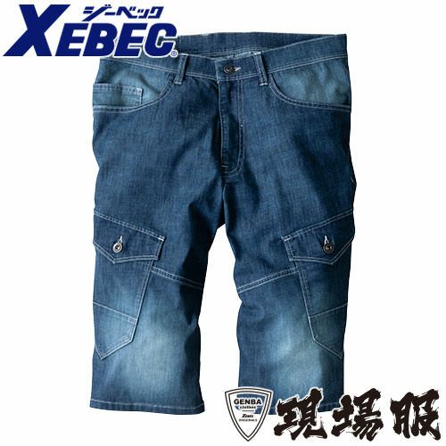作業服 デニム ジーベック XEBEC 現場服 ストレッチ デニムハーフパンツ 2815 作業着 春夏 接触冷感 ストレッチ