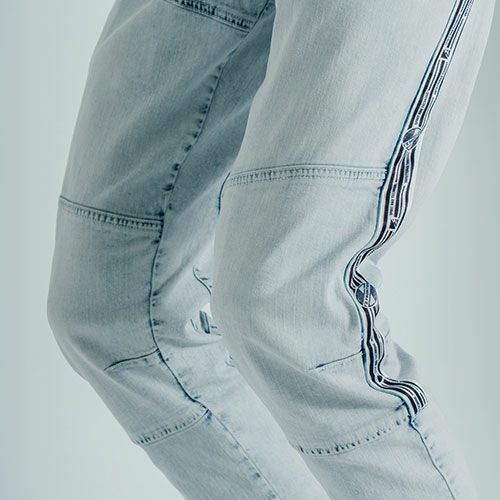 大胆不敵なデザイン性が放つ圧倒的存在感究極のライダースデニムシリーズにアイスフィールモデル登場 ・ナノレベルまで砕いた冷感鉱物を裏面繊維内部に練り込み、ハイレベルな接触冷感機能を発揮します。・肌面繊維の特殊構造により人体の汗を素早く吸収・拡散。従来のデニム素材に比べて快適性がアップしたハイレベルな吸水速乾機能・紫外線遮蔽率97%/UPF49を誇るセラミック練り込み繊維を肌面に使用し、高い遮熱性能を発揮します。・ライトウェイトの素材でありながら、基準値タテ約2.5倍、ヨコ約5倍のハイレベルな引裂き強度を併せ持ちます。・適度な伸長率(ヨコ約26%)を有する快適なストレッチ性能。汗ばむ季節でもストレスの少ない動きやすさを実現すると共に、高い伸長回復率(1時間後約87%)により安定したスタイリングをキープします。・素材のみならず、絶妙な3Dカッティングにより更なる動きやすさとスタイリッシュなルックスを両立・他には類を見ないアイズフロンティアならではの圧倒的なデザイン性。ライダーステイストにスポーツフィーリングを絶妙に融合。更にレタリングラバープリントによりユーロテイストをプラス。至高の存在感を発揮します。
