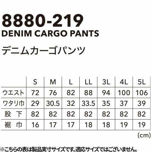 作業服 デニム 寅壱 TORA デニムカーゴパンツ 8880-219 作業着 春夏 カッコいい おしゃれ 人気 ストレッチ 接触冷感 軽量 アウトドア スポーティ カジュアル
