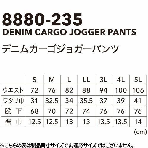 作業服 デニム 寅壱 TORA デニムカーゴジョガーパンツ 8880-235 作業着 春夏 カッコいい おしゃれ 人気 ストレッチ 接触冷感 軽量 アウトドア スポーティ カジュアル
