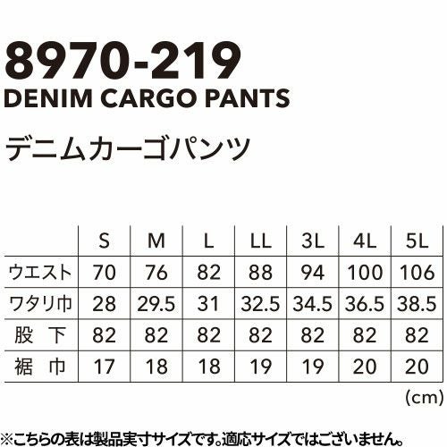 作業服 デニム 寅壱 TORA デニムカーゴパンツ 8970-219 作業着 春夏 カッコいい おしゃれ 人気 ストレッチ 接触冷感 軽量 アウトドア スポーティ カジュアル