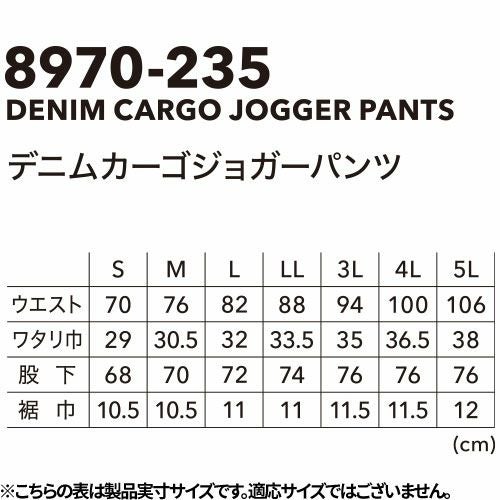 作業服 デニム 寅壱 TORA デニムカーゴジョガーパンツ 8970-235 作業着 春夏 カッコいい おしゃれ 人気 ストレッチ 接触冷感 軽量 アウトドア スポーティ カジュアル