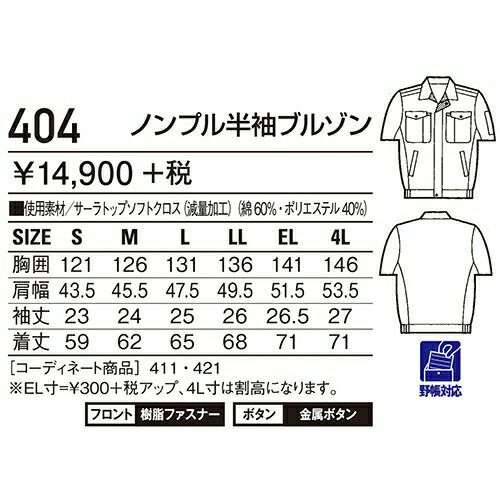 6. 自重堂 DESK-WJ 作業服 404 半袖ブルゾン 春夏 メンズ 作業着 ワークウエア ブルゾン