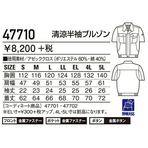 7. 自重堂 Field Message 作業服 47710 半袖ブルゾン 春夏 メンズ 作業着 ワークウエア ブルゾン