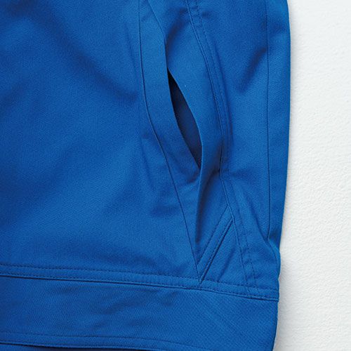 フロントファスナー(隠し)、ドットボタン(隠し)、デオドラントテープ、脇ポケット、内ペン差し・胸ポケット(野帳が入る)、袖口ドットボタン(隠し)