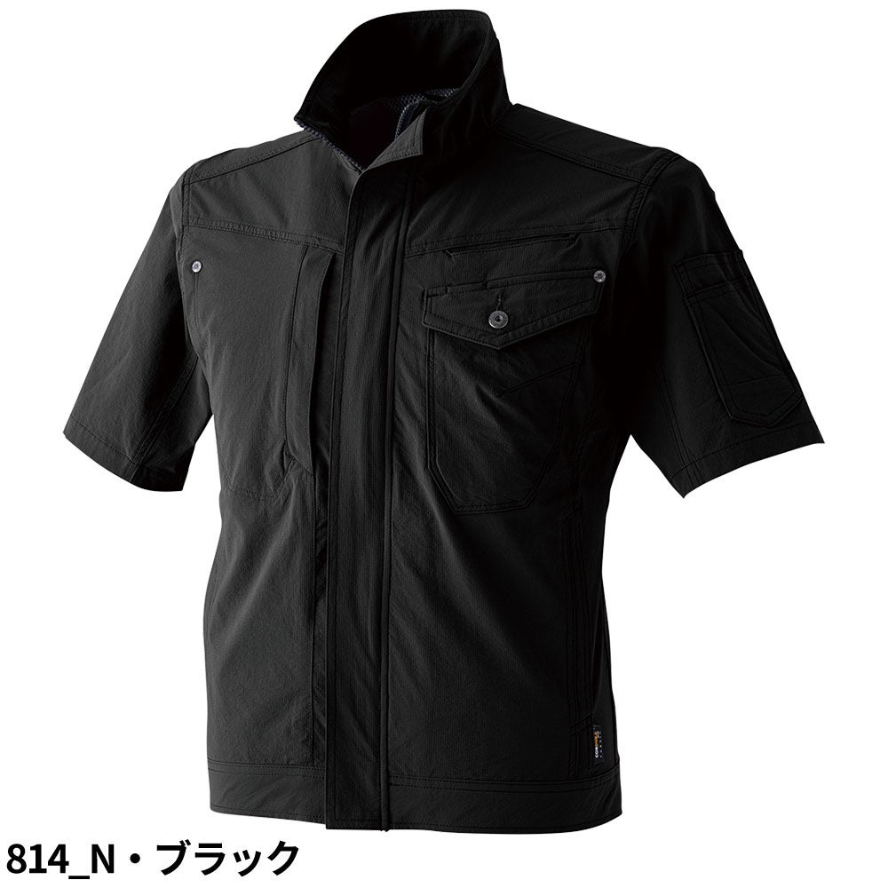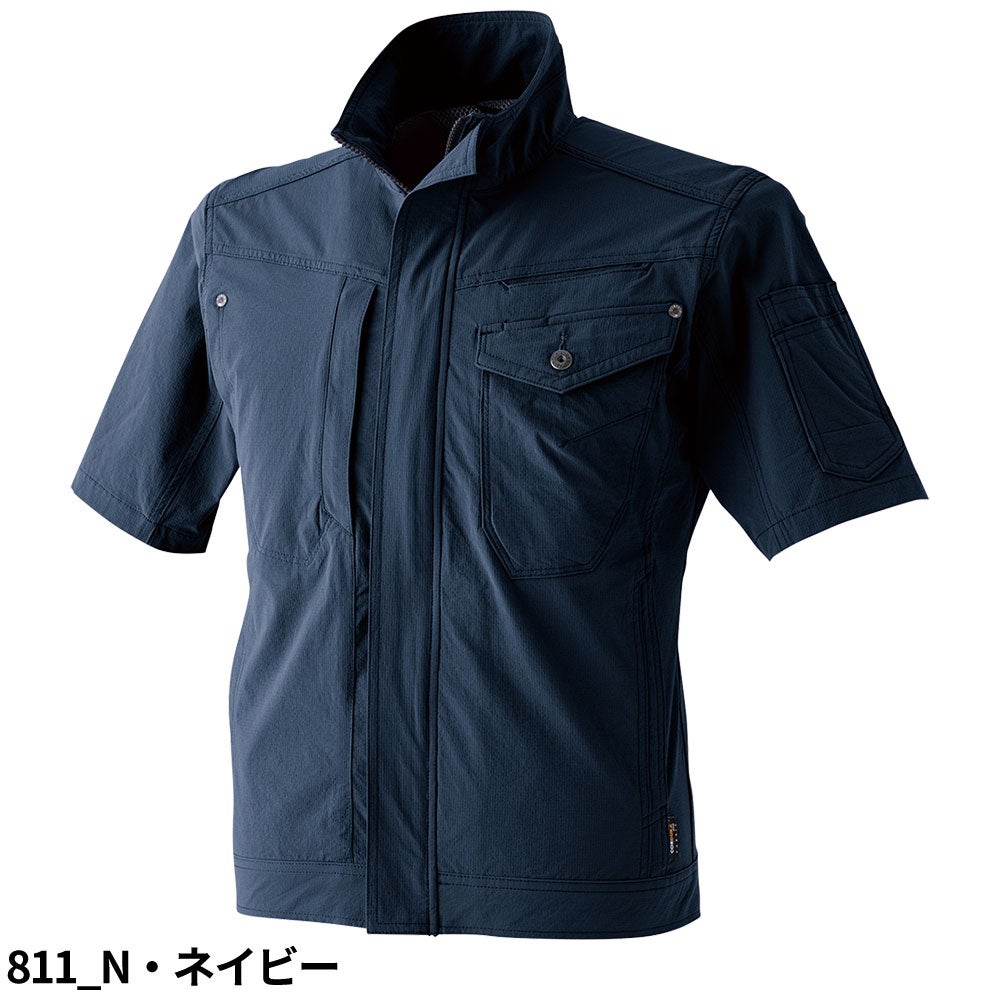 CORDURA×2WAYストレッチ半袖ブルゾン。スマホ収納・背裏メッシュ付きで夏の現場を快適に。