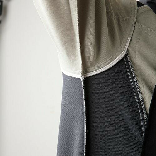 耐久性と快適性をステップアップさせるワングレード上の素材「ジュリス」 ヨコ伸びにすぐれ様々な動きに対応する素材ジュリス。カーボンを含有導電繊維を使用し、帯電防止加工もプラス。鮮やかな発色ナチュラルな風合いも備えます。