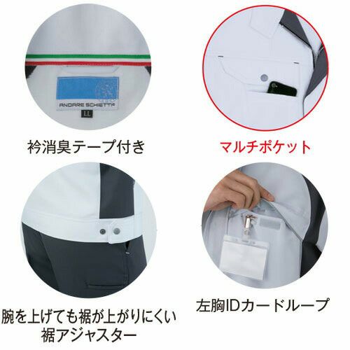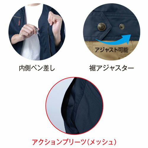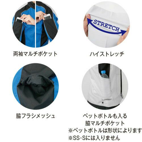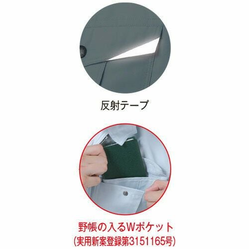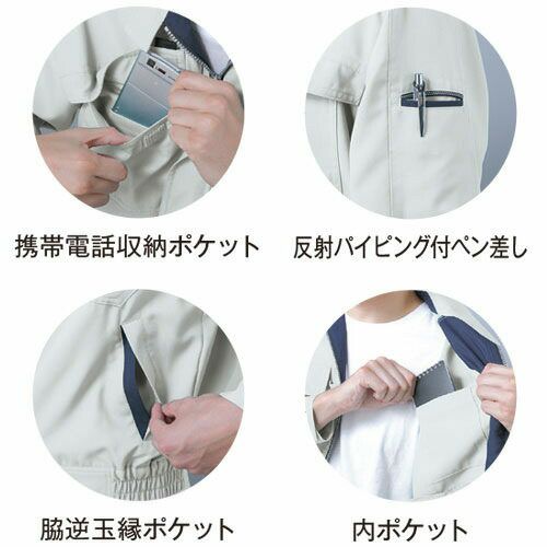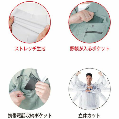 ドビーストレッチによる運動性と、視認性による安全性と掛け合わせたワンランク上のワークウェア! 1.要所に配置した3M Scotchlite反射材で周囲からの視認性を確保し夜間作業や倉庫内作業等での車両事故リスクを軽減2.多彩なツールが携帯できる抜群の収納力を持ちつつも見た目はスタイリッシュ3.多彩なコーディネートが可能4.レディース対応も充実、世代を選ばない人気モデル5.アクティブ&シャープな印象の立ち襟仕様6.高品質の日本製高通気ドビーストレッチ素材