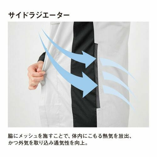 熱中症予防対策ウェア「爽着シリーズ」!高通気と吸汗速乾を両立させ、夏場の衣服内環境づくりをサポート!! 1.高度なジャパンテクノロジーにより高通気を徹底追及した、夏場の安全服「爽着」シリーズ2.優れた熱放散性と吸汗速乾性で快適な衣服内環境を作り出し、熱中症予防をサポート3.環境への負荷が少ないグリーン購入法判断基準対応品4.左右の胸ポケットはたっぷり収納ダブルポケット仕様5.高品質の日本製素材