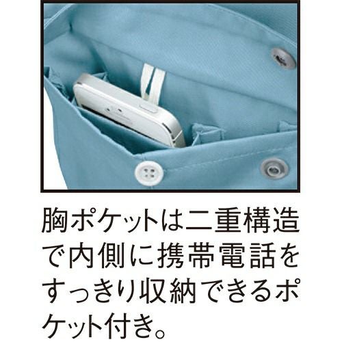 男女ともにクールに着こなす! 清涼素材仕立てスタイリッシュデザイン高品質な日本製ドビークロス(校倉構造)点接触清涼素材を使用優れた通気性に汗のべたつきを解消(COOL BIZ対応商品)レベルブックが入る大型マルチポケット付製品制電JIS T8118適合品腕の上げ下げがスムーズな独自の脇ダイヤカット