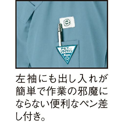 エコの本命服 PETボトルから生まれた再生ポリエステル仕様のエコウエア。男っぽくシンプルにまとめたデザインに通気性に優れ、動きやすいメッシュプリーツロン採用。ソフトな風合いが持ち味で、JIS規格の帯電防止作業服でもあり土木・建築などを中心にハードな現場に人気です。