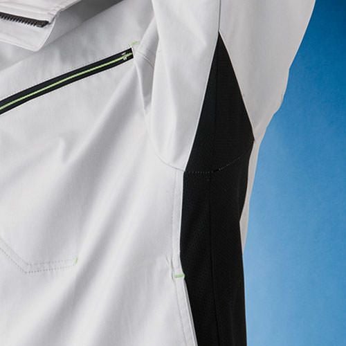 より多くのニーズに応える綿リッチなストレッチ素材 綿高混率のストレッチCVC素材に通気性のいいメッシュを効果的に配置、立体裁断で着心地の良さを追求したニュースタンダードワークウェア