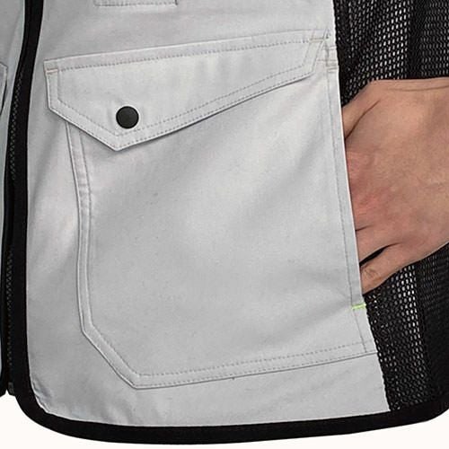 フルハーネス装着時も高い運動性を発揮するプロ仕様 3D立体裁断&ストレッチ素材で腕が動かしやすい数多くのポケットを活用できて収納力に優れているハーネスが触れる部分を磨耗耐久素材使用して強化