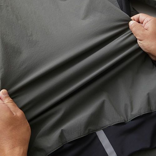 軽量ストレッチ×高機動設計 ムービンカット×バンジーテックで肩から腕にかけての運動性能が大幅にアップ!+通気性 +遮熱 +吸汗速乾、軽く通気性に富んだストレッチ素材を採用