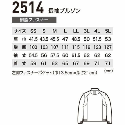 作業服 ブルゾン ジーベック XEBEC 長袖ブルゾン 2514 作業着 春夏 2WAYストレッチ 接触冷感 吸汗 速乾