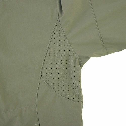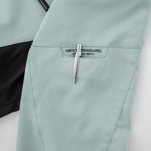 風通る2WAYストレッチ接触冷感性の高いナイロンストレッチとパンチング加工を施した同素材の切り替えにより、涼しく動き易いワークウェアシリーズ ● 2WAYストレッチで動きやすい●パンチング加工生地で通気性UP●ヒンヤリ接触冷感素材●SSからのサイズ展開でユニセックス対応