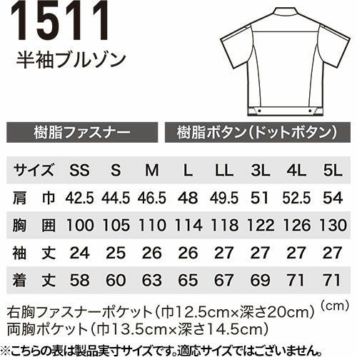作業服 ブルゾン ジーベック XEBEC 半袖ブルゾン 1511 作業着 春夏 ストレッチ 帯電防止 男女共用