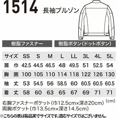 作業服 ブルゾン ジーベック XEBEC 長袖ブルゾン 1514 作業着 春夏 ストレッチ 帯電防止 男女共用