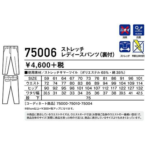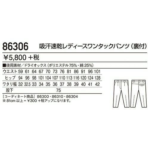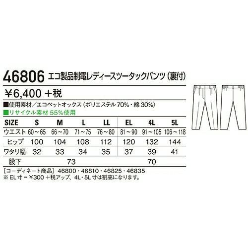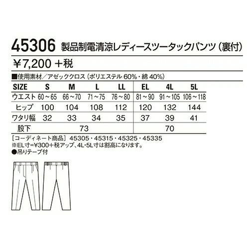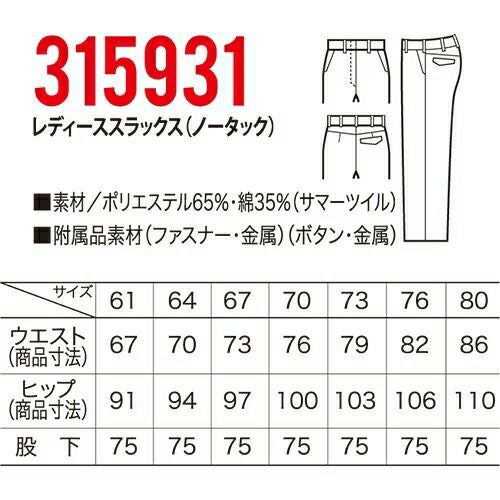 他の画像を見る クロダルマ 315931 レディーススラックス ノータック 作業着 ボトムス ワークウエア KURODARUMA レディーススラックス(ノータック) ワークウェア 作業服(春夏) パンツ・スラックス レディースパンツ 作業服 作 特別価格 ¥ 3,230 税込 詳細を見る お気に入りに登録する