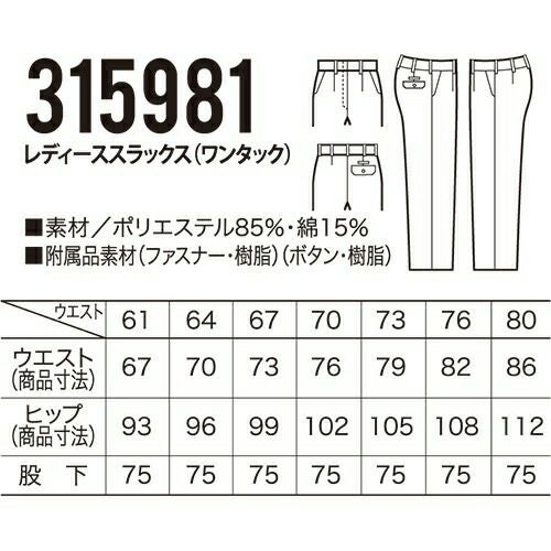 他の画像を見る クロダルマ 315981 レディーススラックス ワンタック 作業着 ボトムス ワークウエア KURODARUMA レディーススラックス(ワンタック) ワークウェア 作業服(春夏) パンツ・スラックス レディースパンツ 作業服 作 特別価格 ¥ 3,894 税込 詳細を見る お気に入りに登録する