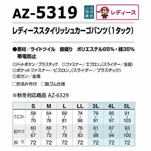 他の画像を見る アイトス AZ-30656 レディースカーゴパンツ(ノータック) AITOZ 作業服 作業着 ボトムス パンツ ズボン レディース 女性用 春夏 帯電防止 特別価格 ¥ 4,250 税込 〜 特別価格 ¥ 税込 様々な環境下に対応可能な快適素材ペンタスUF。遮熱機能&UV遮蔽! 詳細を見る お気に入りに登録する