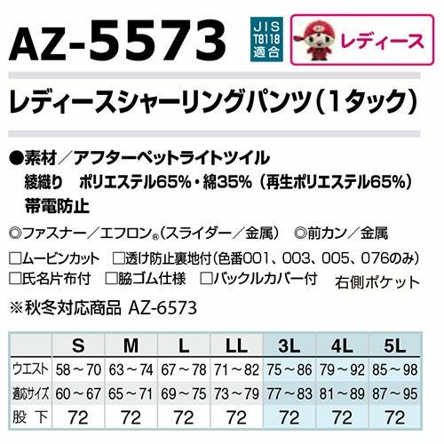 他の画像を見る アイトス AZ-5373 レディースシャーリングパンツ(2タック ツータック) AITOZ 作業服 作業着 ボトムス パンツ ズボン レディース 女性用 春夏 帯電防止 特別価格 ¥ 3,580 税込 〜 特別価格 ¥ 税込 エコマーク対応。無地版も加わりさらにパワーアップ。◎制電素材使用 詳細を見る お気に入りに登録する