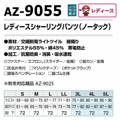他の画像を見る アイトス AZ-9055 レディースシャーリングパンツ ノータック AITOZ 作業服 作業着 ボトムス パンツ ズボン レディース 女性用 春夏 帯電防止 抗菌防臭 消臭 速乾 特別価格 ¥ 4,310 税込 〜 特別価格 ¥ 税込 部屋干しできるレディースワークウェア、オンリーアイトス時乾短縮。帯電防止T8118適合商品。 詳細を見る お気に入りに登録する