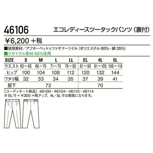 他の画像を見る 自重堂 作業服 46106 レディースパンツ 春夏 レディース 作業着 ボトムス ワークウエア 特別価格 ¥ 4,235 税込 〜 特別価格 ¥ 税込 シンプルなデザインで飽きのこないスタイルが心引かれる。 再生ポリエステル素材を使用し環境にも優しく、レディースペアコーディネート対応商品。 詳細を見る お気に入りに登録する