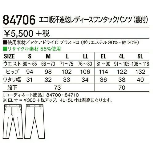 他の画像を見る 自重堂 作業服 85606 ワンタックパンツ 春夏 レディース 作業着 ボトムス ワークウエア レディースパンツ 特別価格 ¥ 3,674 税込 〜 特別価格 ¥ 税込 ボタンやファスナー等の突起物の露出をなくした 安全設計の男女ペアユニフォーム。 「製品制電」、「ストレッチ」、「消臭&抗菌」機能を装備した リーズナブルなユニフォーム。 詳細を見る お気に入りに登録する