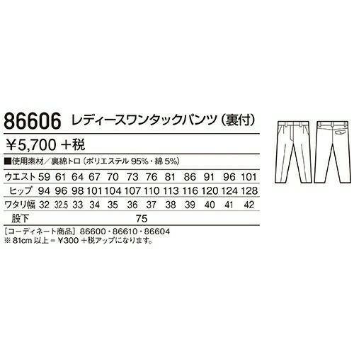 他の画像を見る 自重堂 作業服 86606 ワンタックパンツ 春夏 レディース 作業着 ボトムス ワークウエア レディースパンツ 特別価格 ¥ 3,399 税込 〜 特別価格 ¥ 税込 通気性に優れた裏綿素材を使用した男女ペアユニフォーム。 詳細を見る お気に入りに登録する