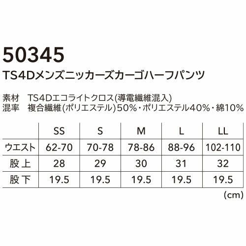 他の画像を見る 作業服 ハーフパンツ 藤和 TS Design TS4Dメンズニッカーズカーゴハーフパンツ 50345 作業着 春夏 ストレッチ 帯電防止 ドライ ウエストゴム カッコいい おしゃれ 特別価格 ¥ 5,270 税込 点接触でドライタッチ通気性とストレッチ性を両立ニッカーズショートパンツ ・タテ・ヨコに伸びるストレッチ性(約15%)・点接触でドライなタッチ感・導電繊維混入で静電気もケア・製品エコ率10%のエコ素材を使用・ウエストゴム仕様 詳細を見る お気に入りに登録する