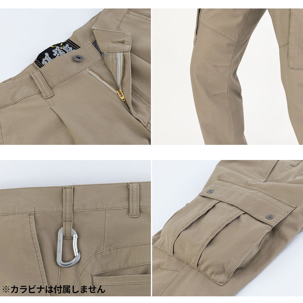 2WAYストレッチ素材と洗い加工で動きやすさとソフトな肌触りを両立した現場服カーゴパンツ。大容量カーゴポケットで道具類の収納力も確保。2853・2854とのシリーズコーデも可能で、現場感とカジュアルなスタイルを両立する2026SS新商品。