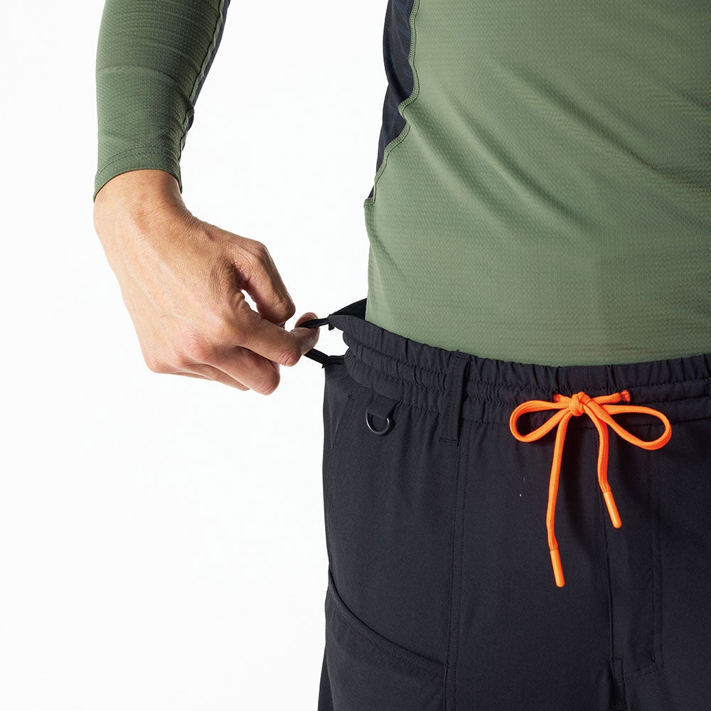 接触冷感の生地を冷感ナイロンストレッチ素材で切り替えることにより、履き心地を底上げさせるハイブリットカーゴパンツ