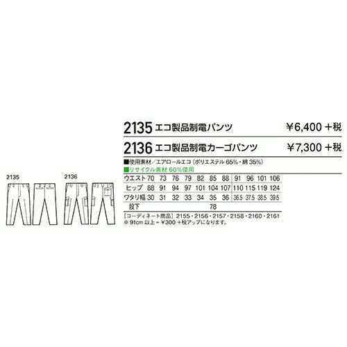 6. 自重堂 TomoeSAKURA 作業服 2136 カーゴパンツ 春夏 メンズ 作業着 ポケット付き ボトムス