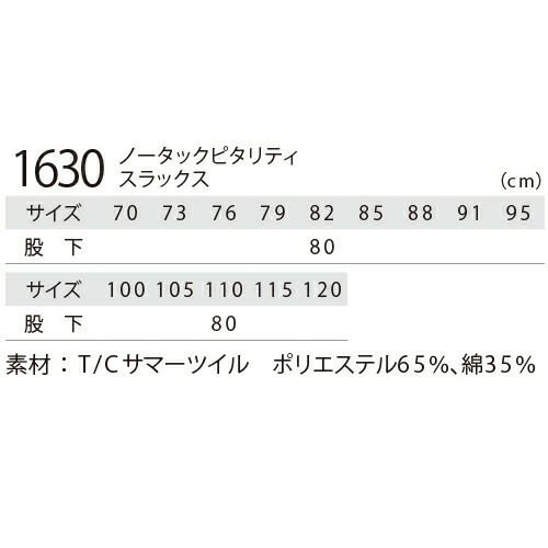 7. ジーベック 1630 ノータックピタリティスラックス 作業服 作業ズボン 春夏用 作業服 メンズ 男性 作業着 作業パンツ パンツ スラックス 腿ポケット無 定番