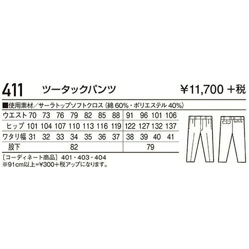 6. 自重堂 DESK-WJ 作業服 411 ツータックパンツ 春夏 メンズ 作業着 腿ポケット無 ボトムス スラックス