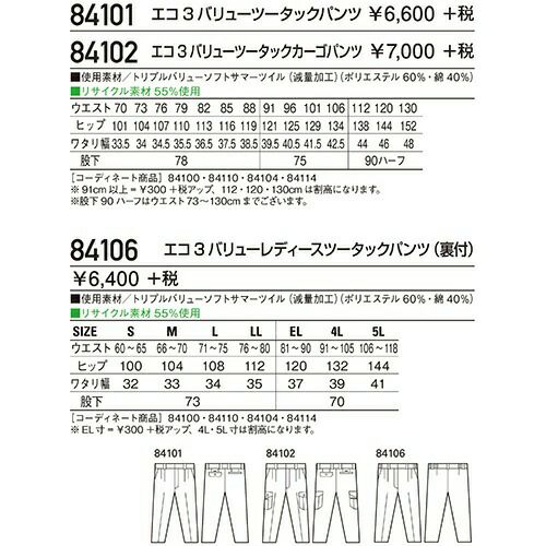 「3つの価値」(再生ポリエステル使用のエコ素材・分子レベルの防汚加工・製品制電)を 併せ持つ機能充実のワークウエア。