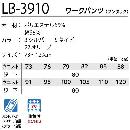 作業服 パンツ スラックス タカヤ商事 TAKAYA ワークパンツ LB-3910 作業着 春夏作業着 作業服 スラックス 春夏