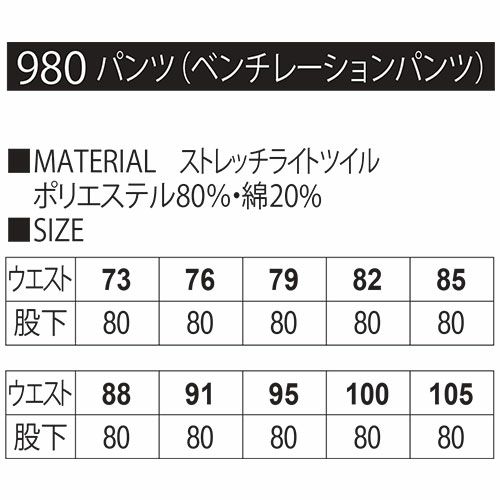作業服 パンツ スラックス ホシ服装 ベンチレーションパンツ 980 作業着 春夏 ストレッチ 遮熱 UVカット 吸汗速乾 抗菌防臭