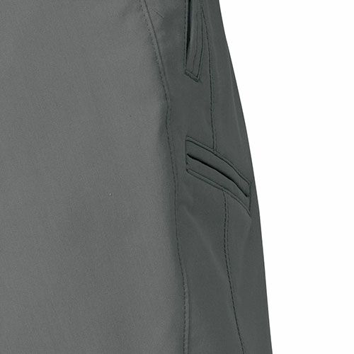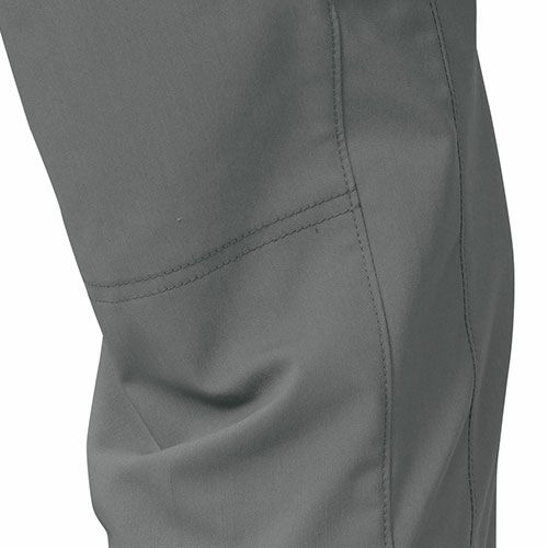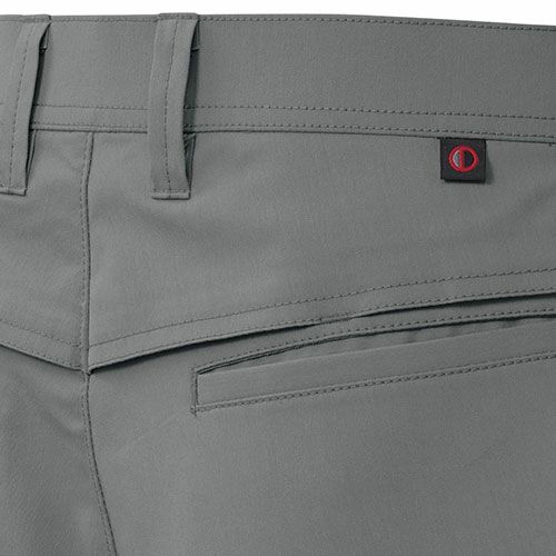 伸びるウエスト(約3cm)、ていねいな始末のベルトループ(全6本)、通気口(ウエスト・ポケット・ヒザ裏)、スマートなシルエットのノータック仕様、スマートフォン収納ポケット