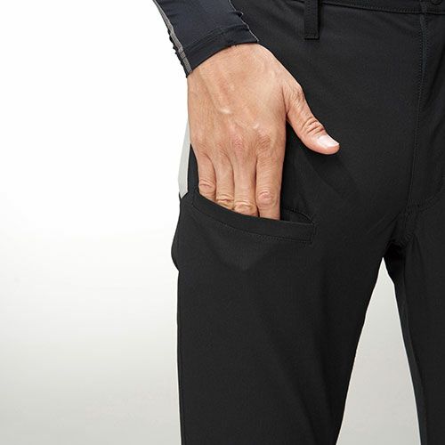 点接触でドライタッチ通気性とストレッチ性を両立ニッカーズリブカーゴパンツ ・タテ・ヨコに伸びるストレッチ性(約15%)・点接触でドライなタッチ感・裾リブ仕様・導電繊維混入で静電気もケア・製品エコ率10%のエコ素材を使用・ウエストゴム仕様