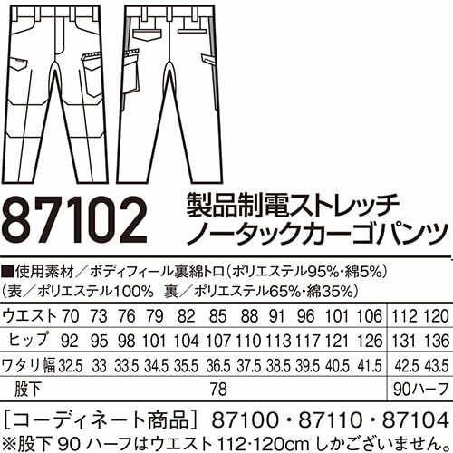 作業服 カーゴパンツ 自重堂 Field Message 製品制電ストレッチノータックカーゴパンツ 87102 作業着 春夏 メンズ レディース ペアユニフォーム 人気 上下セット対応 制服 企業ユニフォーム 工場 研究 伸縮 静電気 埃 防汚 汚れにくい 落ちやすい