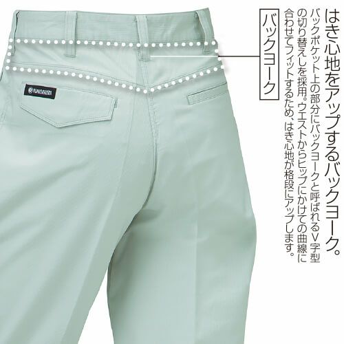通気性に優れた伸びる素材で、快適な履き心地のスラックス ドビークロスの地模様の連続によって表現される「ドビーストライプ」適度な張りがあり、シワになりにくい軽くて通気性が良く、汗をかいてもすぐ乾く伸びる素材で静電気もおきにくい、着心地爽快なストレッチユニフォーム