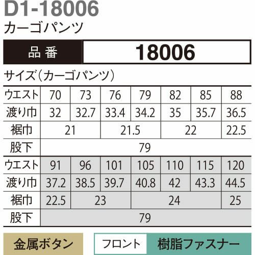 作業服 カーゴパンツ 大川被服 DAIRIKI ダイリキ D1-18006 18006 作業着 春夏