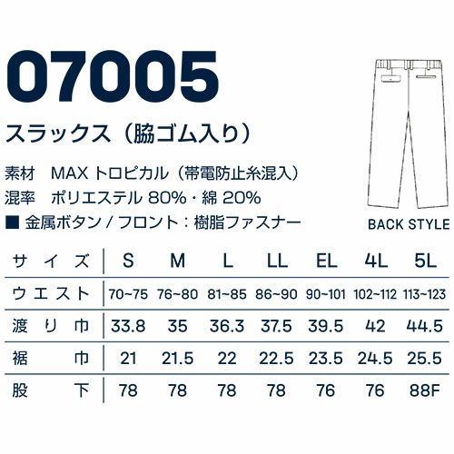 作業服 パンツ スラックス 大川被服 DAIRIKI ダイリキ V-MAX17005 スラックス(脇ゴム入り) 17005 作業着 春夏