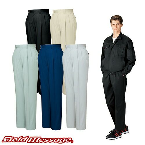 自重堂 Field Message 作業服 84801 ワンタックパンツ 春夏 メンズ 作業着 腿ポケット無 ボトムス スラックス