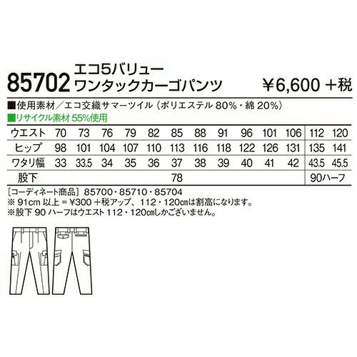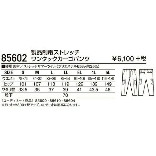 自重堂 作業服 85602 ワンタックカーゴ 春夏 メンズ 作業着 ポケット付き ボトムス ワークウエア カーゴパンツ