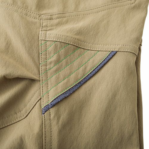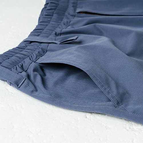 ●ポリエステル100%だが吸汗拡散に富んだ機能素材を使用●軽量で耐久性に優れる●ポリウレタンを入れたストレッチではないので経年劣化しない●左カーゴポケットフラッグにオリジナルロゴ再帰性反射プリント入り●ポケット袋布の底部は補強布を当てた二重仕立