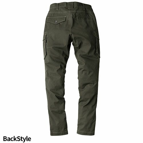 超のびのびストレッチ現場服 洗い加工を施した生地はユーズド感がありながらも、ドビー織の凹凸感でハードな印象を与えます。ポリウレタン糸の入ったのびのびストレッチとやわらかい風合いで着用時の窮屈感を軽減します。●超伸びストレッチ素材●パンツ裾ヒモ穴付きで絞っての着用も可能