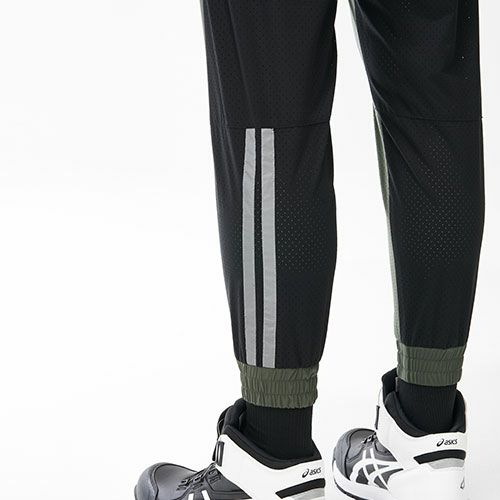 通気性を兼ね備えた猛暑の中がんばる人のための軽量ジョガーパンツ 大胆に配されたパンチング生地が通気性を高め衣服内換気を促しベストパフォーマンスへ導く
